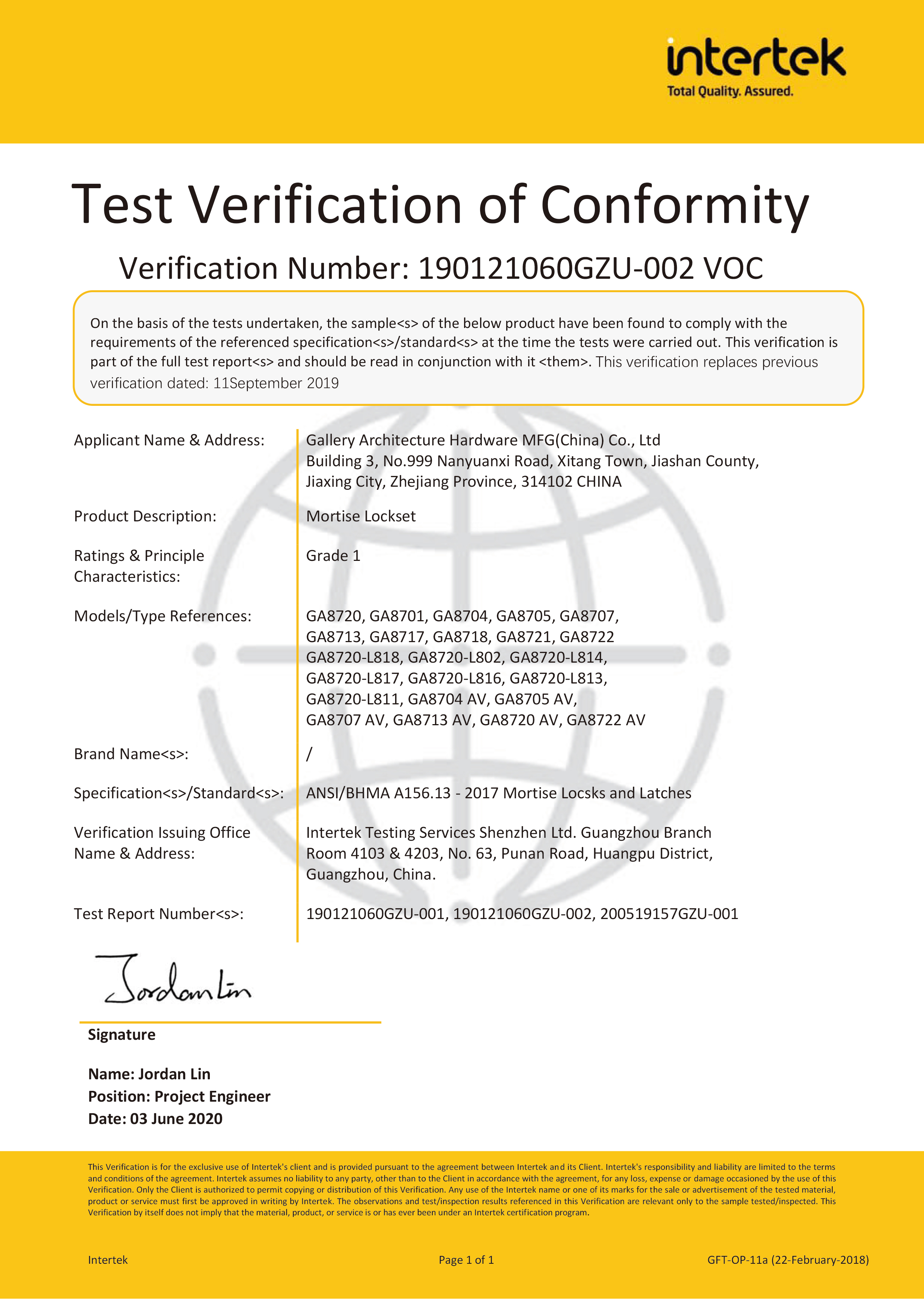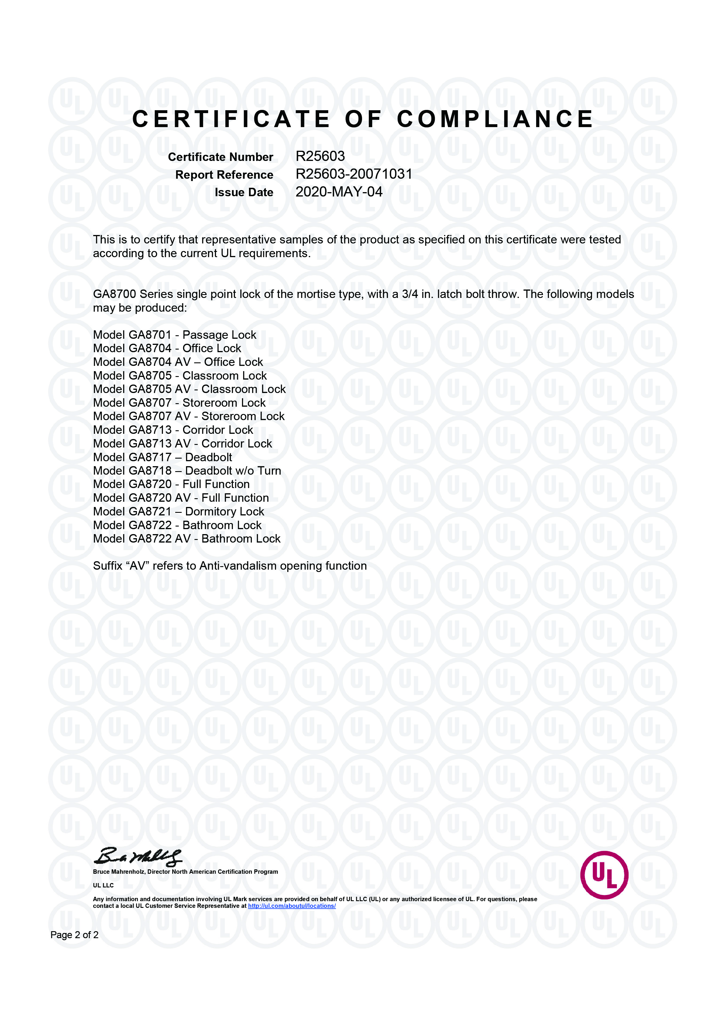 8700系列1級美標插芯鎖